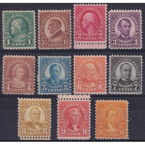 1923-26 Presidents printed with Rotary Press Printing D. 11 x 10 1/2 sets of 11 values | Mint NH