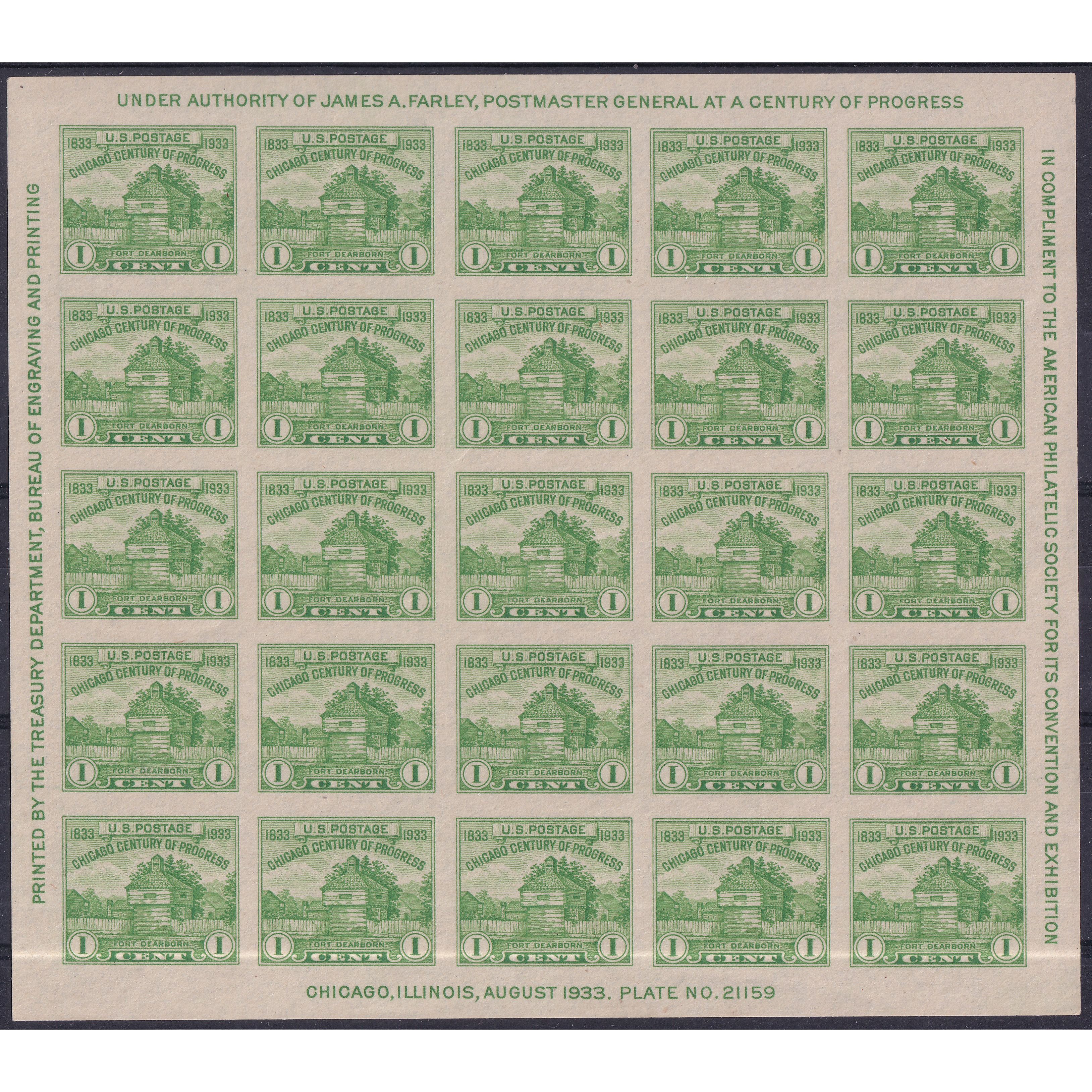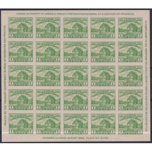 1933 Chicago Stamp Show 1c Sheet | Mint without gum