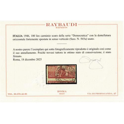 1945 Democratic Series 23 ordinary mail values L. 100 | Used