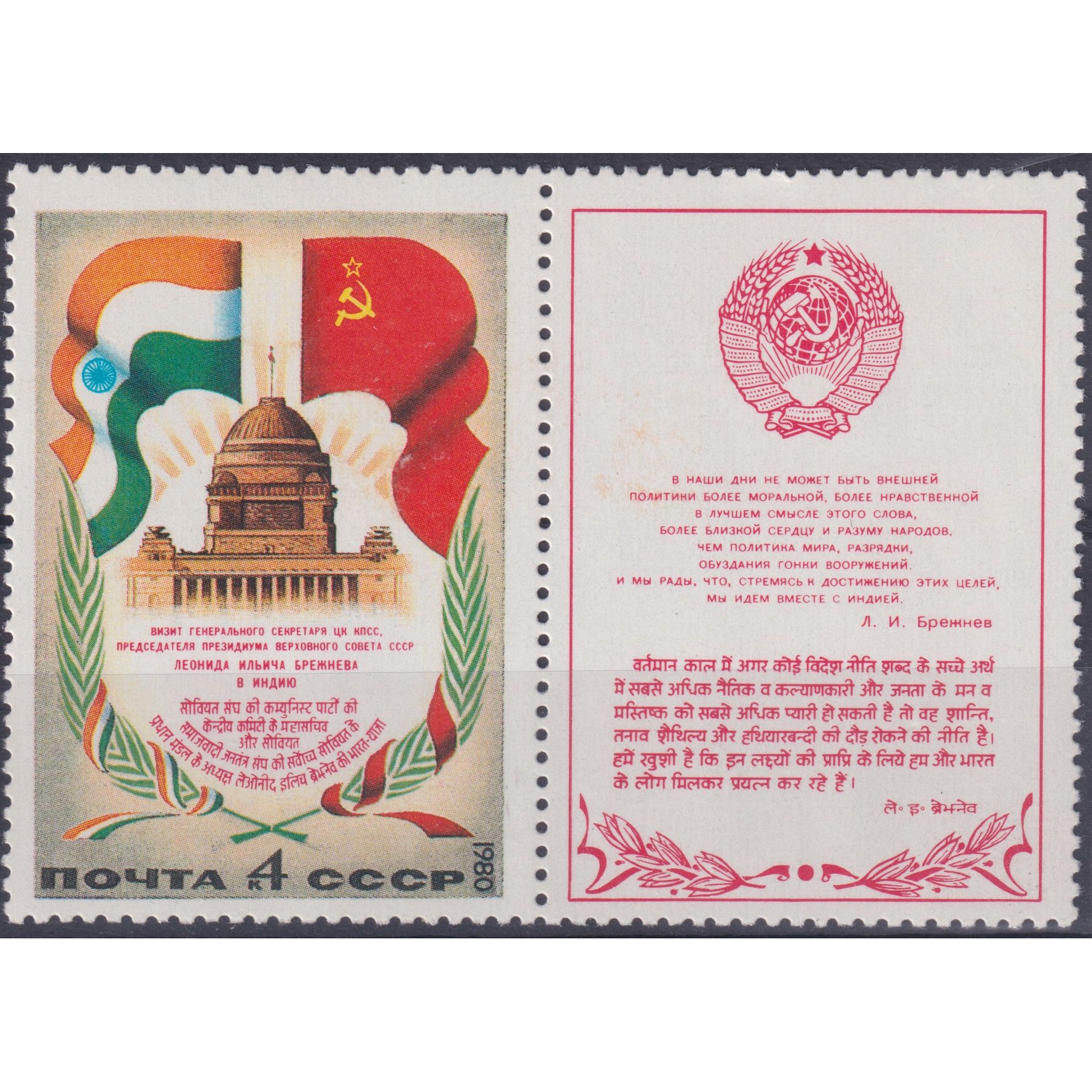 1980 - Visiuta del presidente Brezhnev in India .Emesso con apppendice. Nuovo**