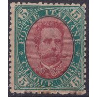 1889 49 Head of King Umberto I - 5L green carmine| Mint H