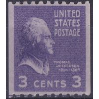 1938-43 - Presidential Series - T. Jefferson 3 cents Violet issued in reels | Mint NH