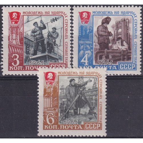 Francobolli Russia 1961 - Partecipazione della gioventù al piano settimanale.