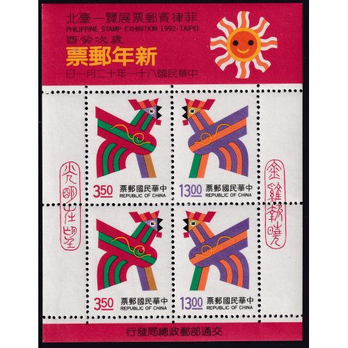 Taiwan 1992 - Lunar New Year. Year of the Rooster. Leaflet overprinted | Mint NH