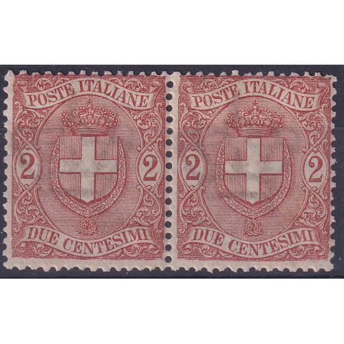 1896 66 Stemma di Savoia 2 c rosso bruno - coppia | Nuovo**