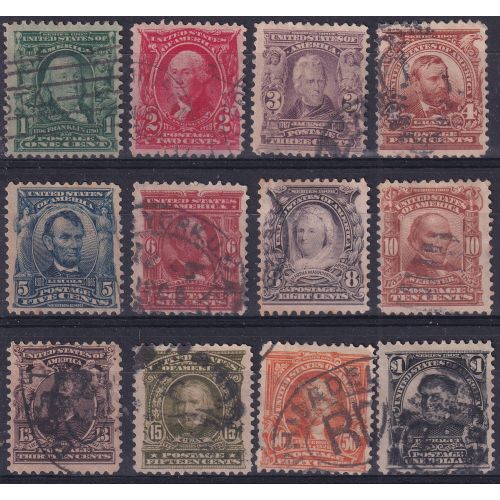 Francobolli Stati Uniti 1902- Effigi di Presidenti.Serie ordinaria. D.12 12 val.Cat.Un. 164-75