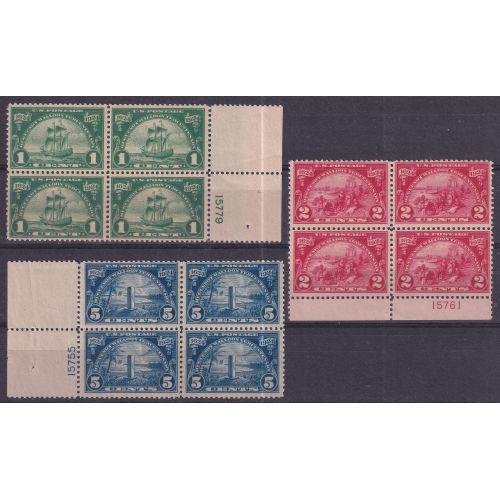 Francobolli Stati Uniti 1924 - 3° centenario dell'insediamento dei Valloni ed in onore degli Ugonotti. in quartina con numeri di tavola