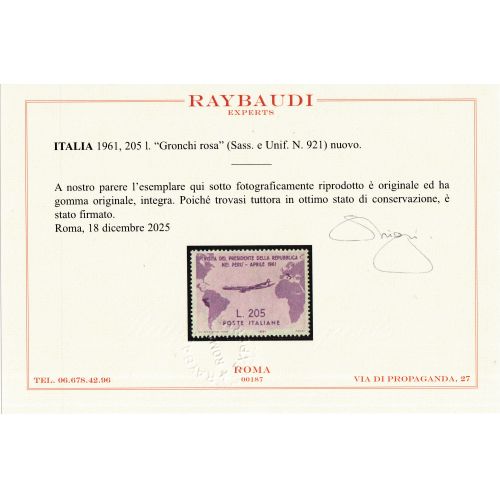 Francobollo nuovo con gomma integra con certificato di garanzia Raybaudi