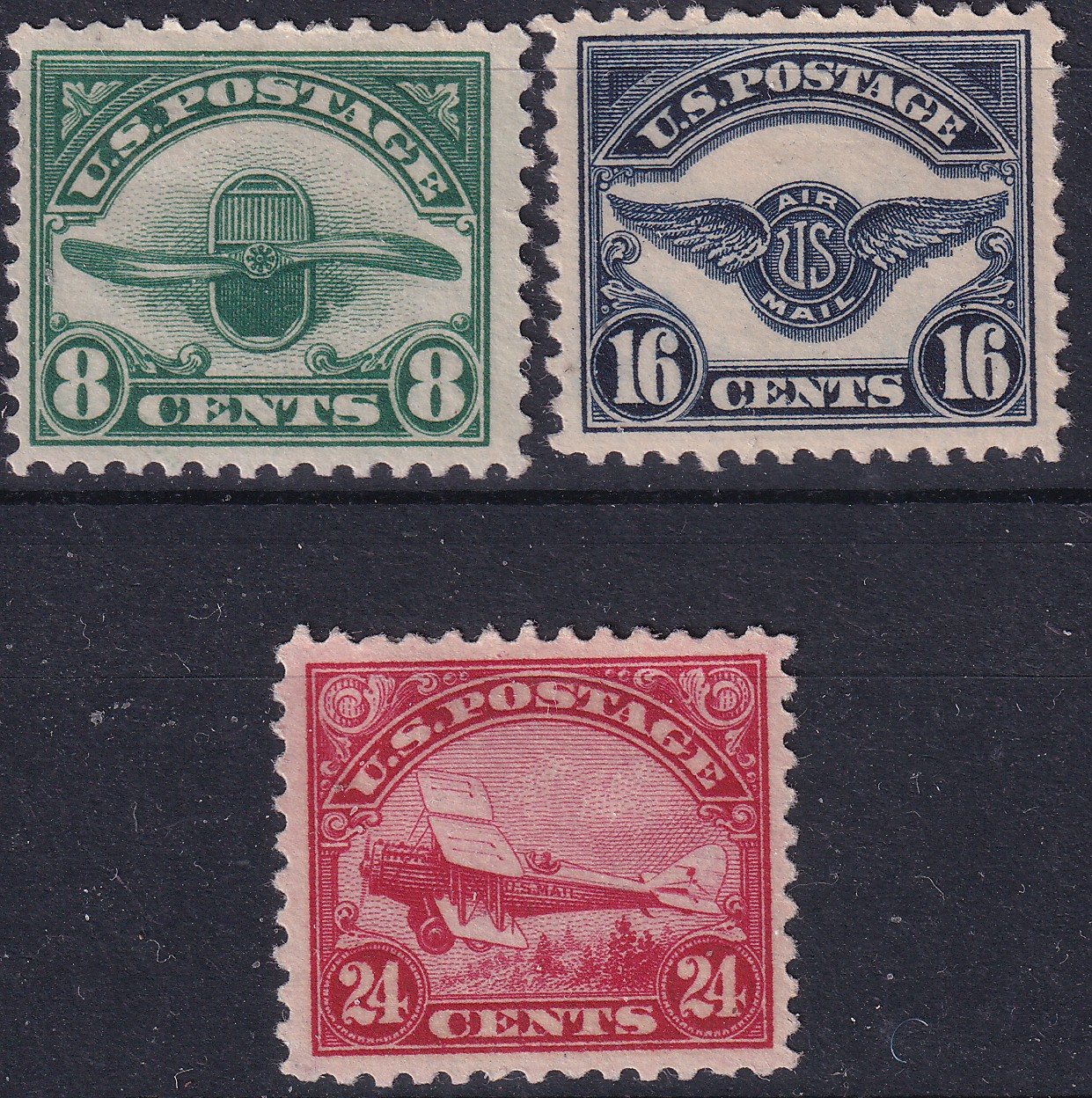 Francobolli Stati Uniti1923 - Soggetti vari. Emessi per il servizio aereo notturno tra N.Y. e S. Francisco. Nuova con traccia di linguella.