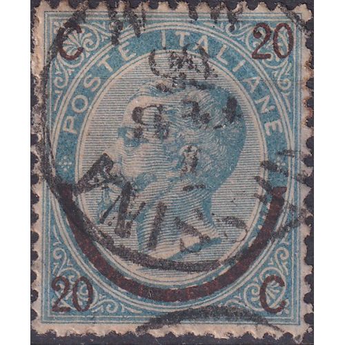 Emesso il 1 gennaio 186520 c. su 15 c. - Soprastampa a ferro di cavallo, primo tipoSenza contrassegni sopra e sotto gli asterischi laterali